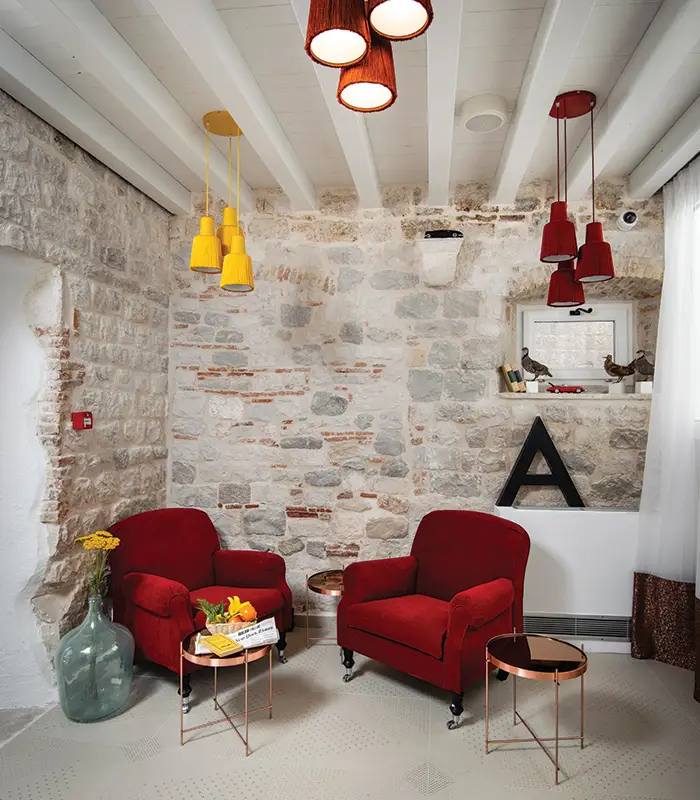 The hotel’s comfortable rooms combine traditional Dalmatian architecture with modern amenities. All rooms are air-conditioned and feature a flat-screen TV, minibar, safe, work desk, and a private bathroom with shower and complimentary toiletries. Original stone details add to the hotel’s historic charm.