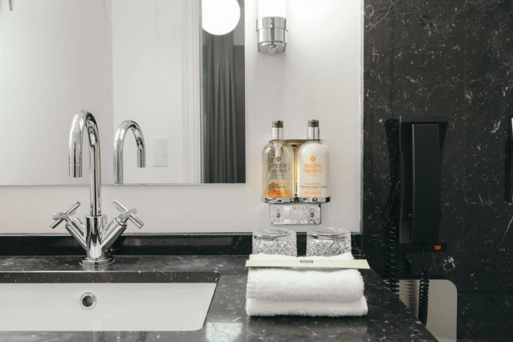 All rooms at Hotel Borg feature quality beds and Philippe Starck fittings. Each also has wooden floors and stylish art deco furniture.