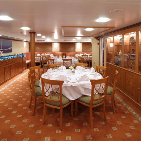 Category A cabins are located on the main offering windows and bathroom with showers. The cabins are equipped with individual controlled A/C, piped music, TV (Satellite channels), telephone for internal use, mini safe box, mini fridge and hairdryer adapters (voltage: 220 V).